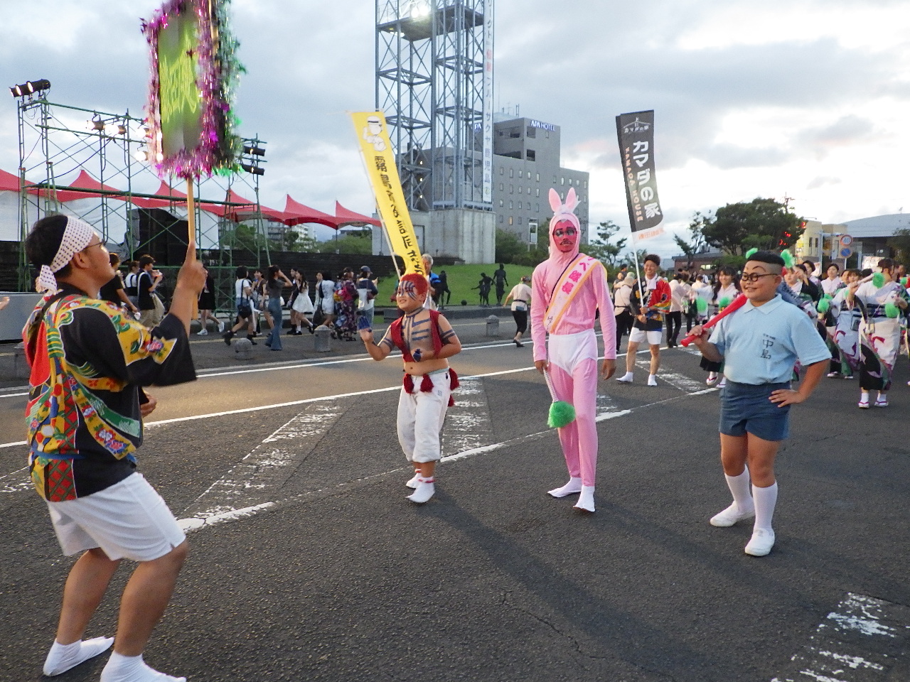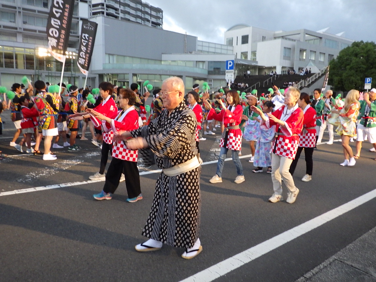 初日のメインイベントである「市民総踊り」は約6000人の参加者の熱気のおかげで、怪しい天気予報ではありましたが踊りの最中にも大雨になることなく、2時間楽しみながら「おはら節」「はんや節」「おじゃんせ霧島」を踊ることができました🎶